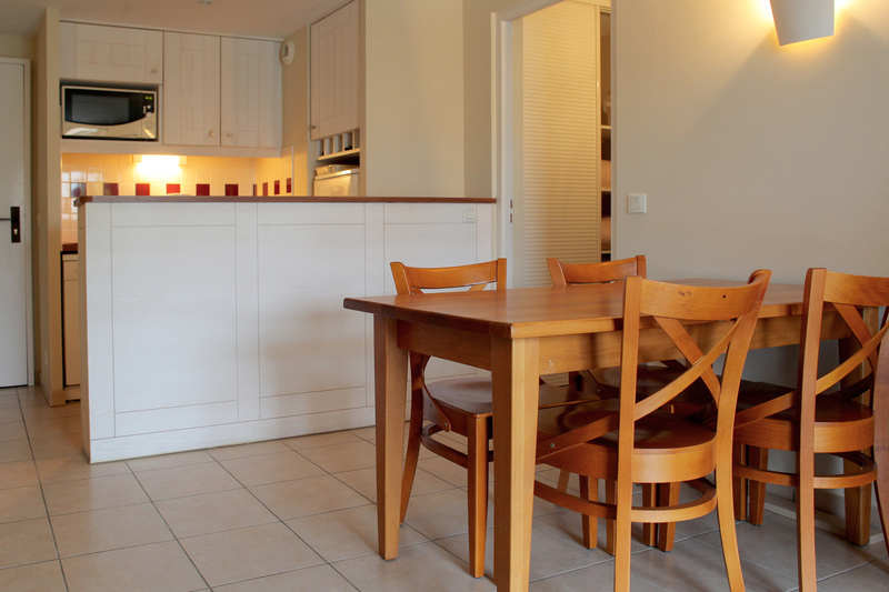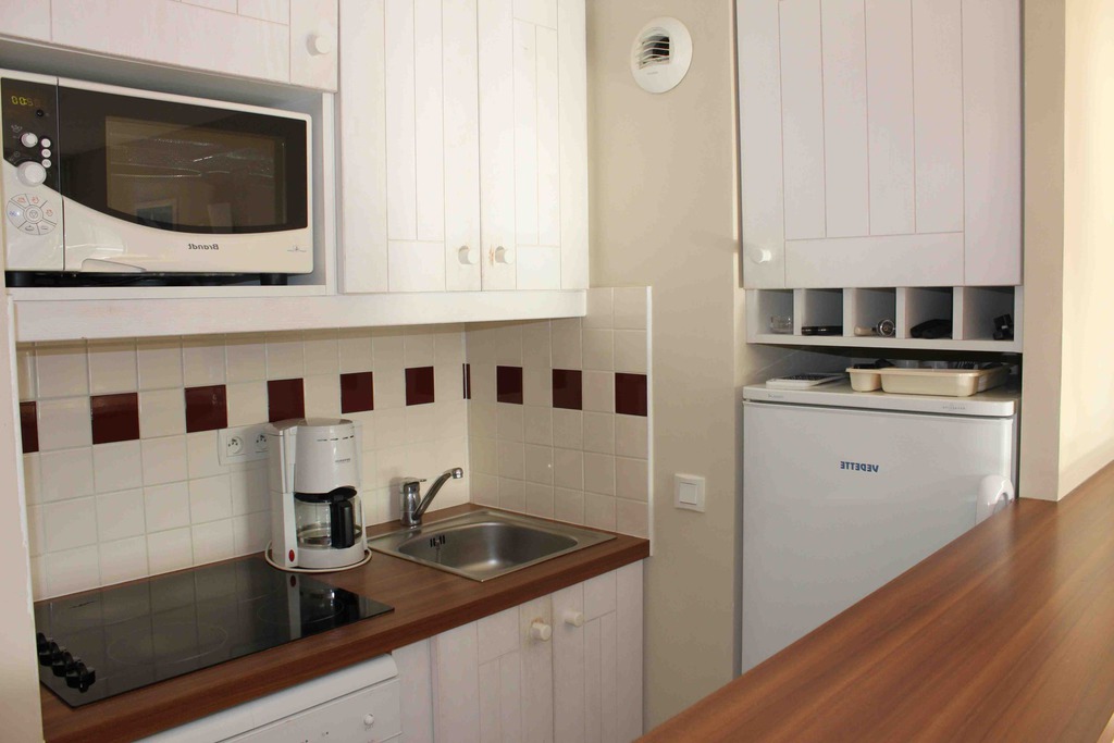 - Coin cuisine ouvert sur le séjour avec lave vaisselle, four micro onde, table vitro céramique, cafetière