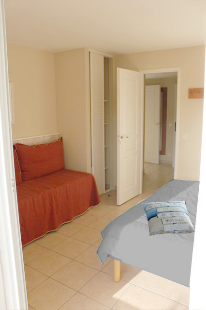 - Chambre : 3 lits simples, pouvant se transformer en 1 lit double et 1 simple, placard de
